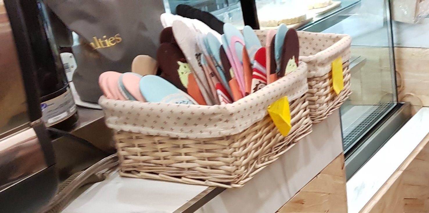 Little Zoo Cafe has two outlets, one in Nonthaburi, which is about half an hour’s drive away from Pratunam and a newer outlet, just at Siam Square. We went to the one at Siam Square, on a weekday afternoon and were second in line. The entrance fee was THB350 for a drink, a pair of socks and a souvenir or a dessert. We chose to get the souvenir which was either a handphone holder, a coaster or a pair of utensils.