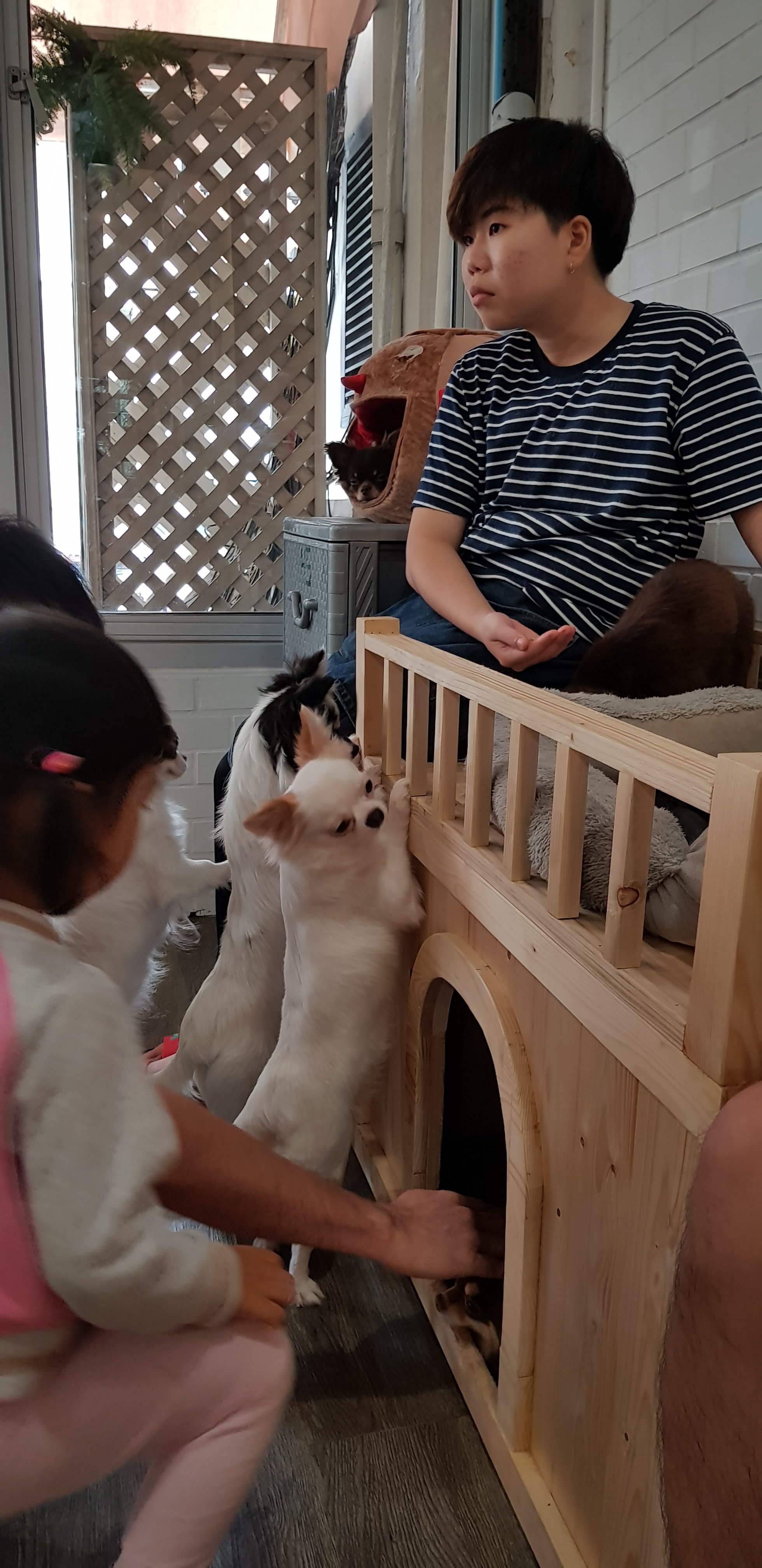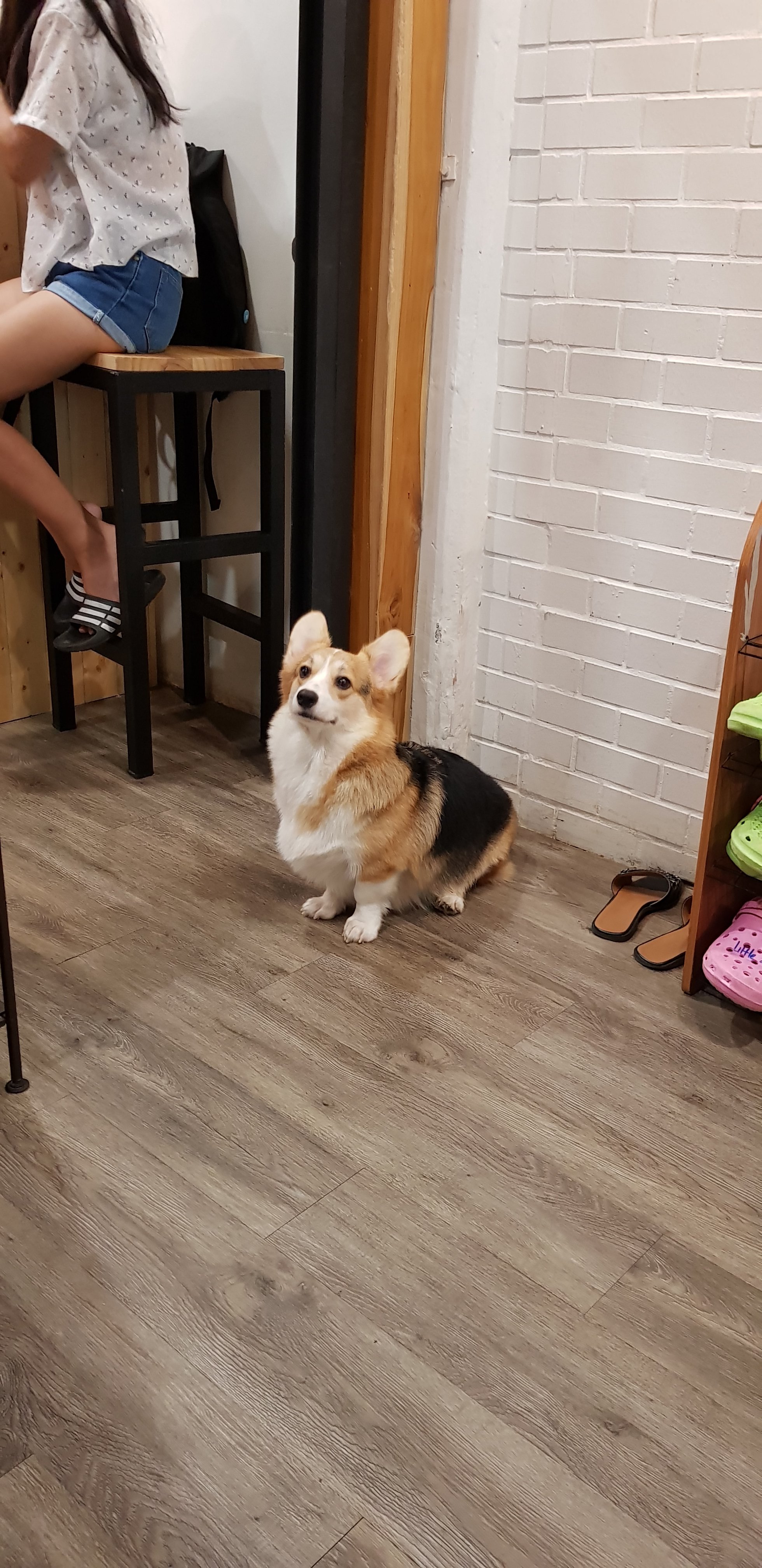 We were entertained by a free-roaming corgi while waiting for our turns to enter the second floor where all the animals were at. Finally, after 30 mins of waiting, we got our drinks and was one step closer to seeing the fur kids! Upon finishing our drinks, we sanitized our hands, then changed into the socks (that were given) and the flip-flops.