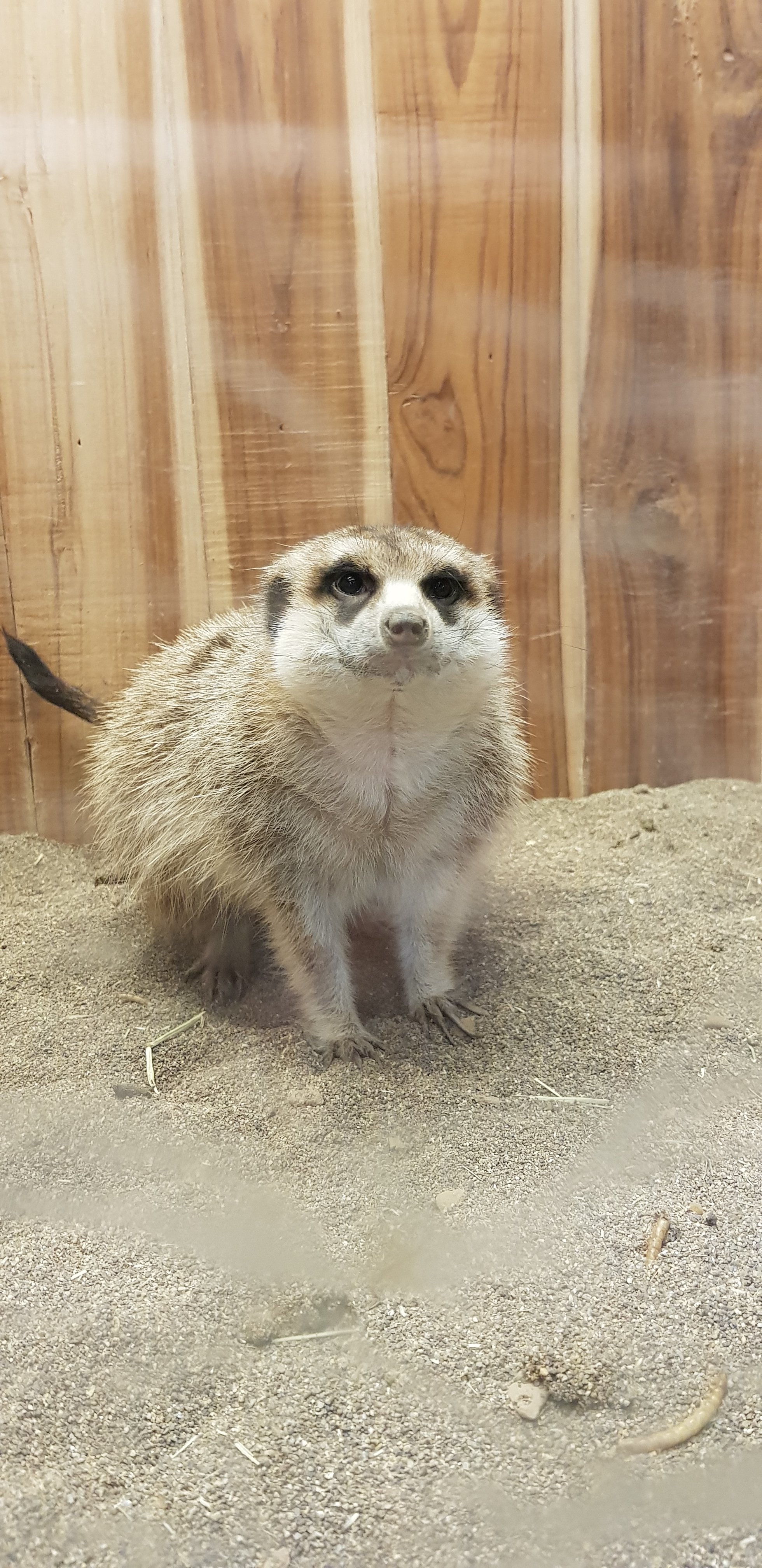 Heading up to the second floor, we were shown to our table which we spent only about 10 mins at. The glass behind our table housed the meerkat which was out with guests at the next table. The guests were a little squirmish so we proceeded to the room with not one, not two but FOUR corgis!