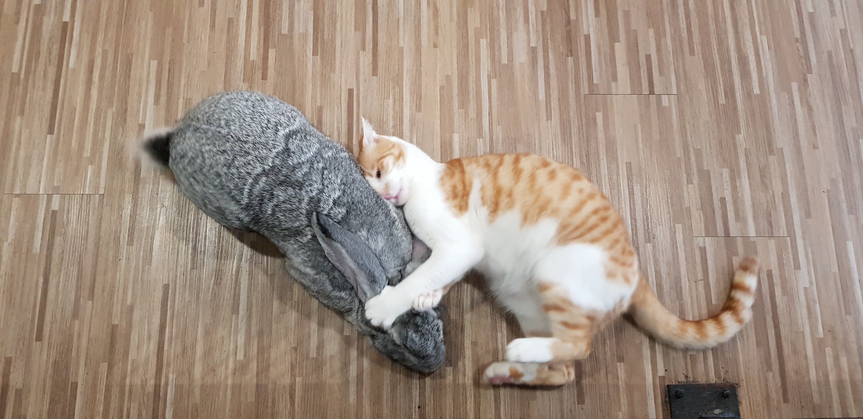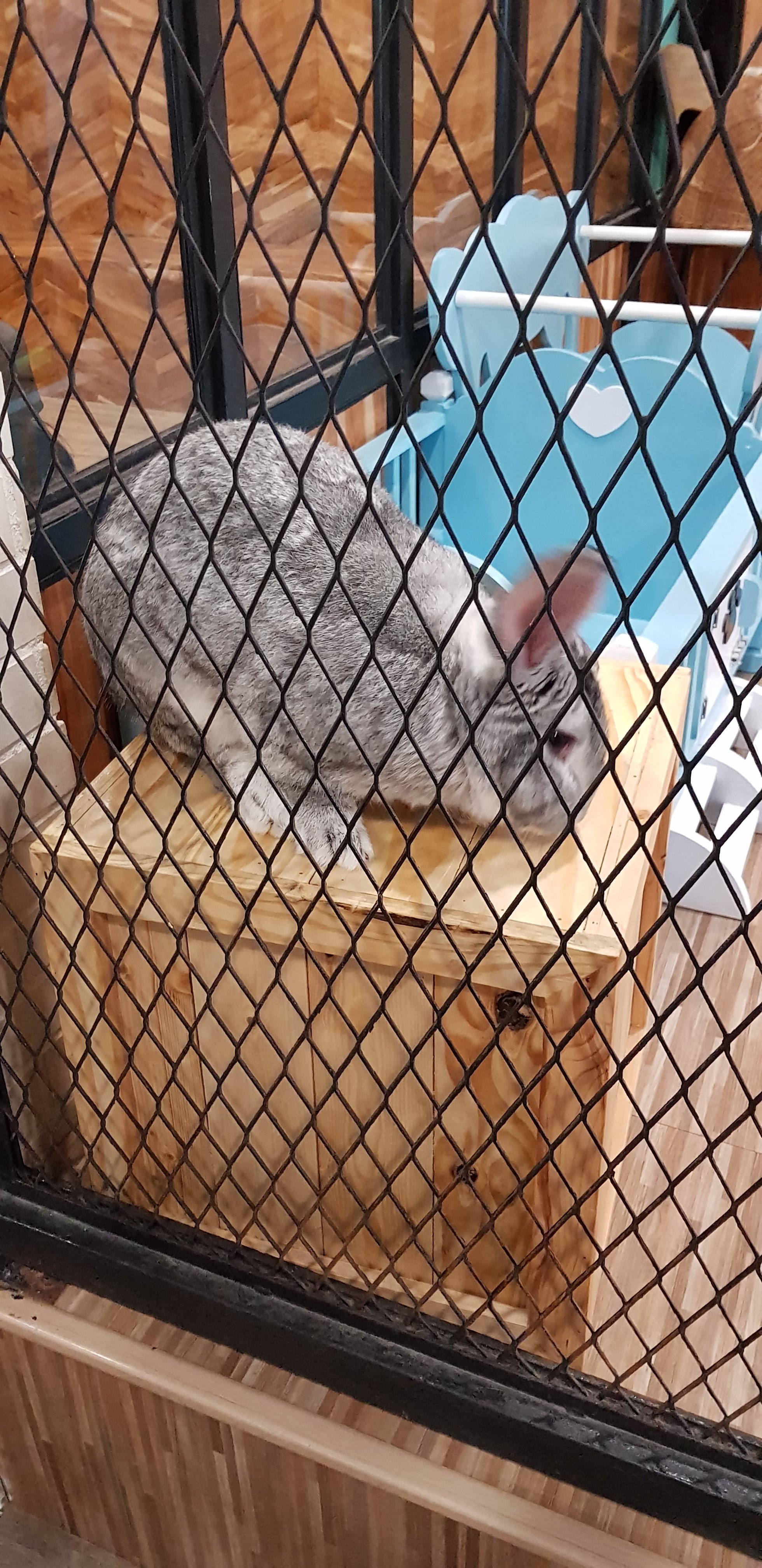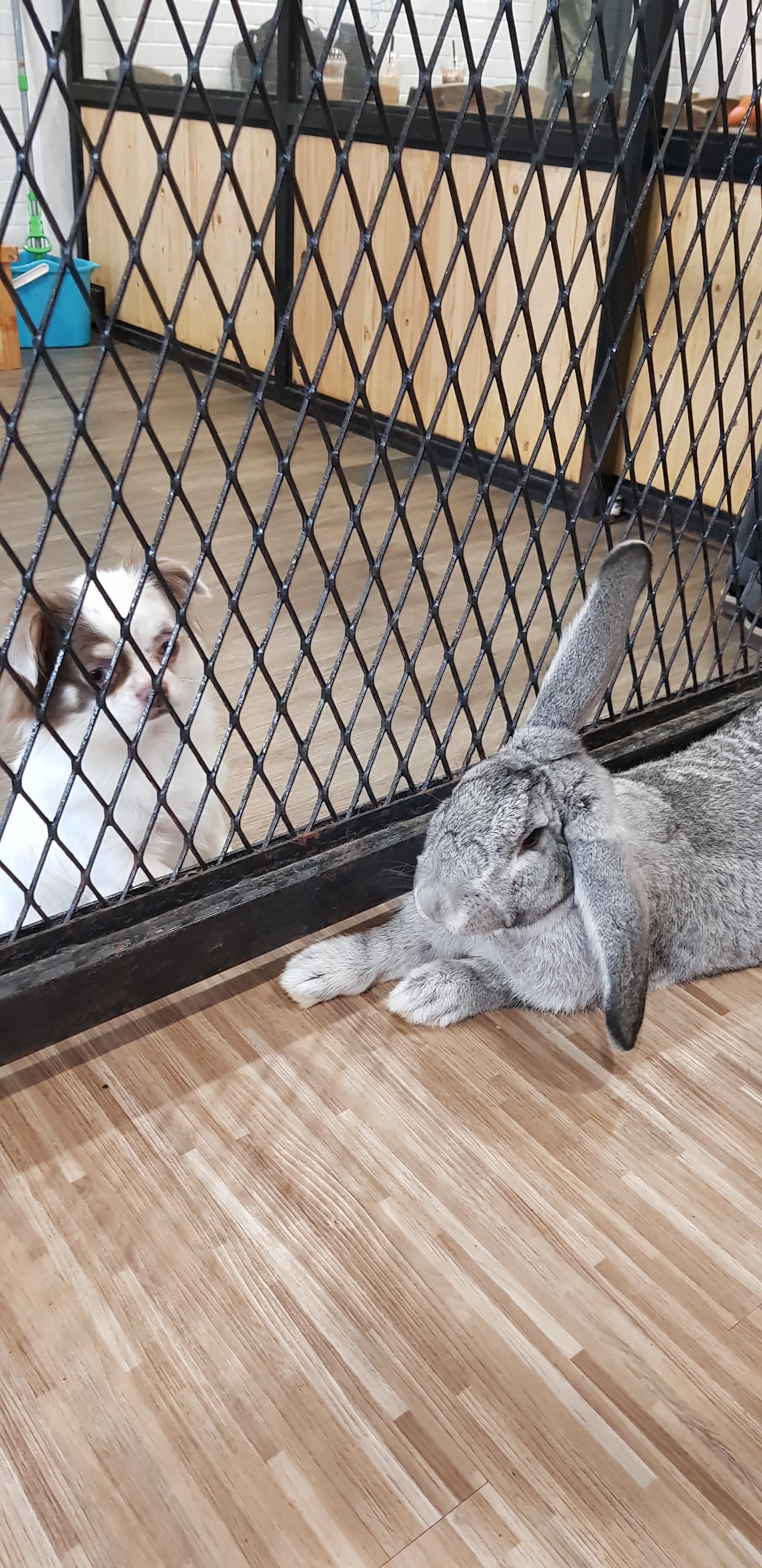 After an eternity, we went to the next room where the other animals were in. The room was segregated into the puppies area and the Fennec foxes area. In the Fennec foxes area, there were some grumpy cats and a huge ass bunny.