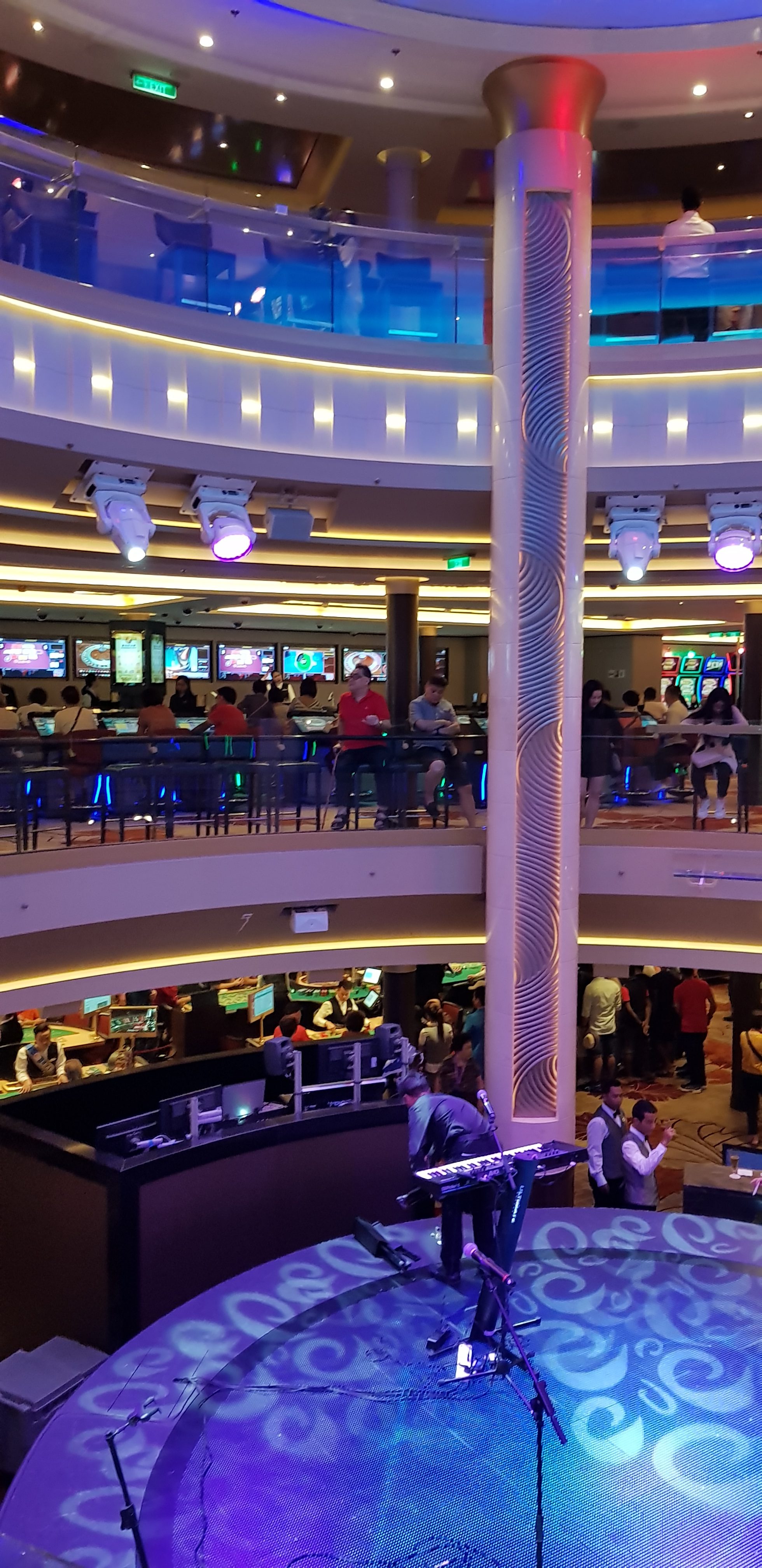 Admittedly, the number one entertainment for grown-ups has to be the casino. Extending from Deck 6 to 8, there were lots of table games and machines available in the Resorts World at Sea casino. Every now and then, there is even a live performance at the central stage of the casino. Also, there is a bar within the casino at Deck 8 to chill to the live performance. After all, all the adrenaline rush due to the gambling can get a bit taxing.